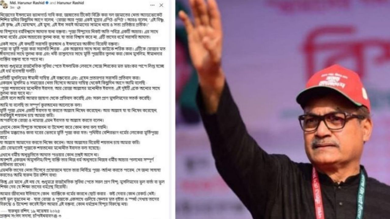 হারুনুর রশীদ দাবি: পূজা ‘শয়তানের ইবাদত’ মন্তব্যে ধর্মীয় অনুভূতিতে আঘাতের প্রশ্ন আসে না
