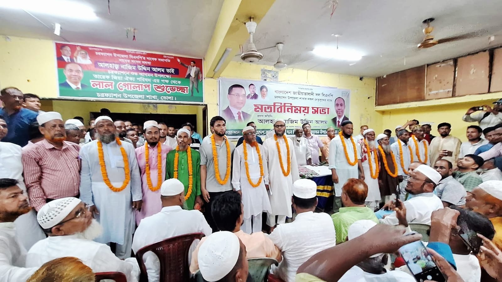 গতকাল সোমবার রাতে ভোলা-৪ আসনের বিএনপির সাবেক সংসদ সদস্য নাজিম উদ্দীন আলমের নিজ বাসভবনে সাবেক ওই জামায়াত নেতা ও তার অনুসারীদের গলায় ফুলের মালা পরিয়ে স্বাগত জানান।