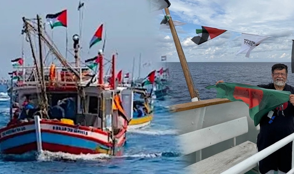 গাজার দিকে এগিয়ে যাচ্ছে আন্তর্জাতিক নৌবহর গ্লোবাল সুমুদ ফ্লোটিলা। আর এই নৌবহরে এবার উড়তে দেখা গেছে বাংলাদেশের লাল-সবুজ পতাকা। সুমুদ ফ্লোটিলায় ৪৪টি দেশের ৫৫টি জাহাজ অংশগ্রহণ করছে, যেখানে সাংবাদিক, মানবাধিকার কর্মী, শিল্পী ও সাধারণ স্বেচ্ছাসেবীরা মানবিক সহায়তা পৌঁছে দিতে গাজার উদ্দেশ্যে ছুটছেন।