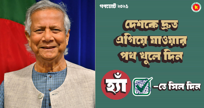 বাংলাদেশের মঙ্গলের জন্য সবাইকে গণভোটে ‘হ্যাঁ’ ভোট দিতে হবে বলে মন্তব্য করেছেন অন্তর্বর্তী সরকারের অর্থ উপদেষ্টা ড. সালেহউদ্দিন আহমেদ। শুক্রবার (১৬ জানুয়ারি) সন্ধ্যায় সিরাজগঞ্জ জেলা প্রশাসকের কার্যালয় চত্বরে জেলা প্রশাসন আয়োজিত আসন্ন ত্রয়োদশ জাতীয় সংসদ নির্বাচনে ভোটের গাড়ি সুপার ক্যারাভান-এর মাধ্যমে গণভোটের প্রচার ও ভোটারদের উদ্বুদ্ধকরণ কর্মসূচির উদ্বোধন অনুষ্ঠানে তিনি এ মন্তব্য করেন।