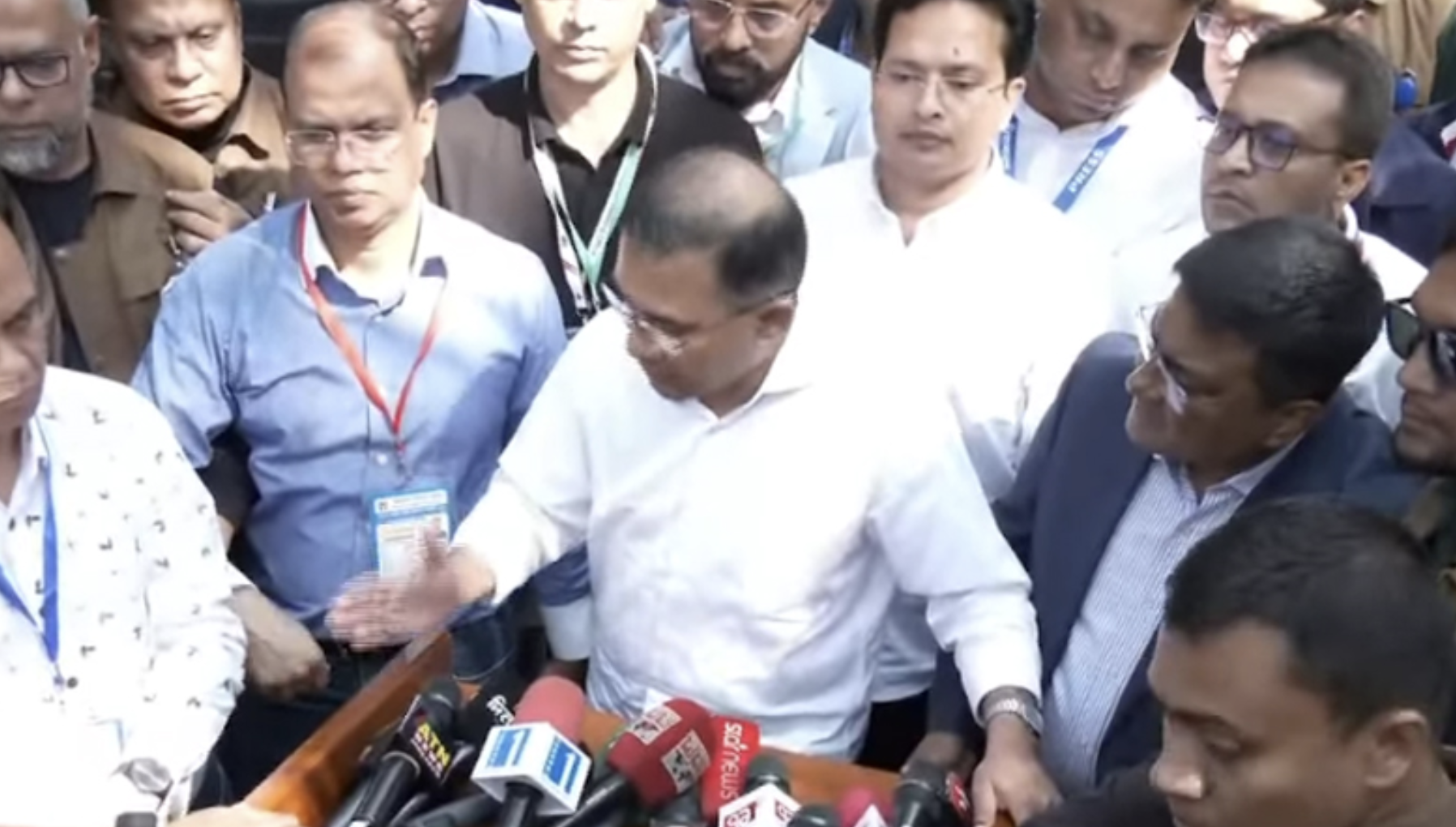আজ বুধবার (১২ ফেব্রুয়ারি) সকাল পৌনে ১০টার দিকে ভোটকেন্দ্রে দুই নেতা পরস্পরের সঙ্গে কুশল বিনিময় করেন। ভোটকেন্দ্র থেকে বের হবার পথে সাক্ষাৎ হয় তাদের। এসময় ব্যতিক্রমী দৃশ্যের অবতারণা হয়। একে অপরকে জড়িয়ে ধরেন জামায়াতে ইসলামীর আমির ডা. শফিকুর রহমান ও ধানের শীষ প্রতীকের প্রার্থী মো. শফিকুল ইসলাম খান মিল্টন। এ সময় তারা কিছুক্ষণ কথা বলেন এবং একে অপরকে আলিঙ্গন করেন।