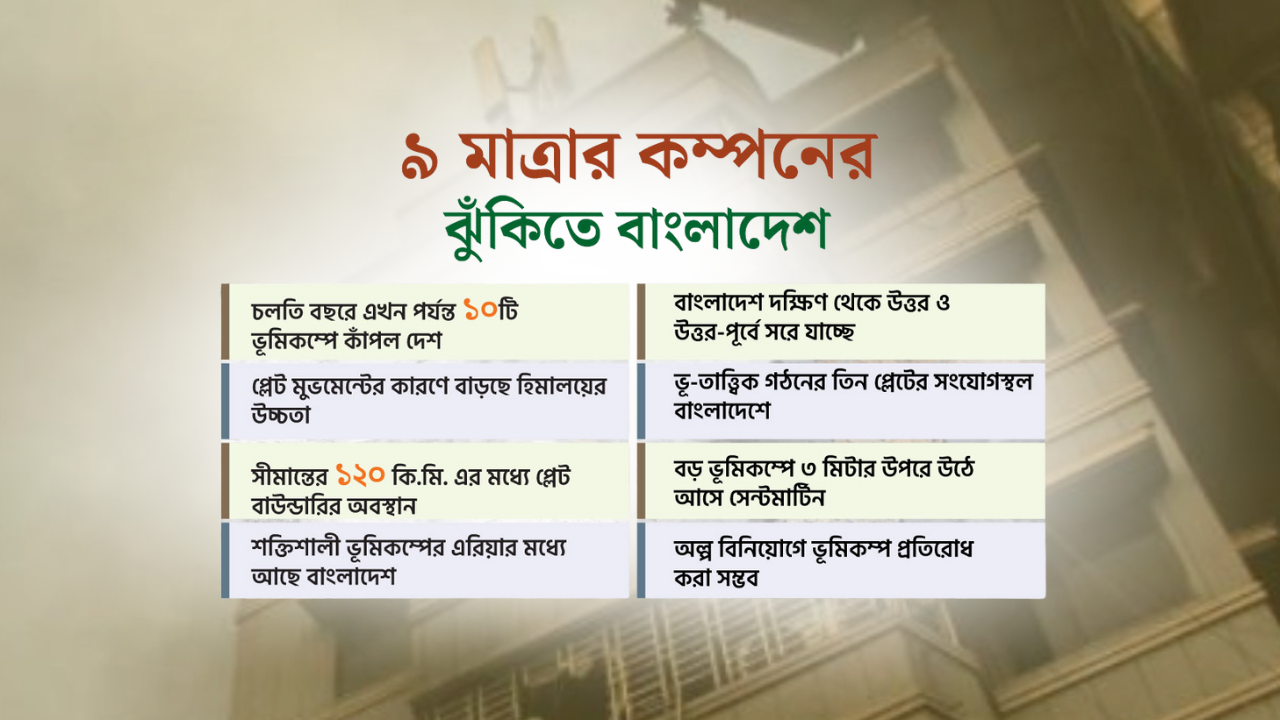 বাংলাদেশে বড় ভূমিকম্পের ঝুঁকি বাড়ছে, বিশেষজ্ঞদের সতর্কবার্তা—৯ মাত্রার কম্পনের সম্ভাবনা