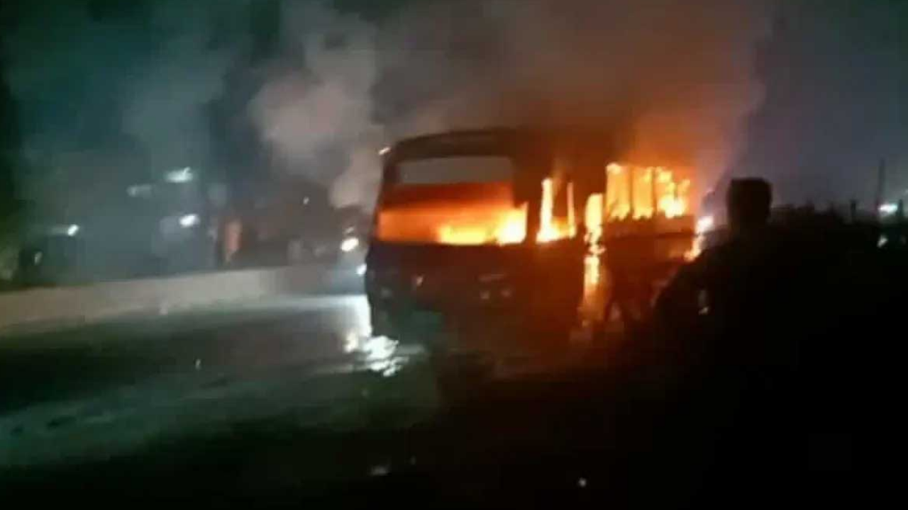 গাজীপুরে দাঁড়িয়ে থাকা যাত্রীবাহী বাসে দুর্বৃত্তদের অগ্নিসংযোগ