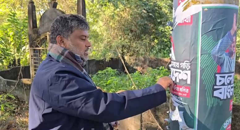 নির্বাচনী আচরণবিধি মানতে নিজ হাতেই পোস্টার ছিঁড়লেন জামায়াতের শিশির মনির