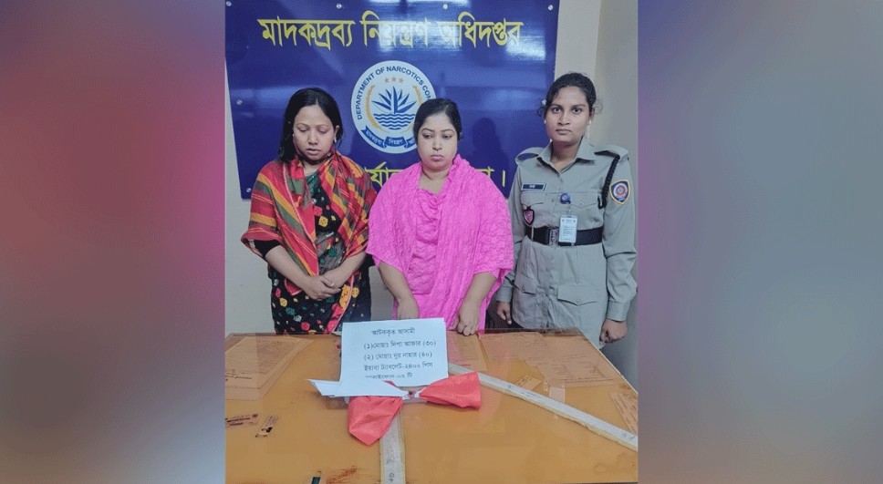 বগুড়ায় অভিনব কায়দায় ইয়াবা পাচারের সময় ননদ-ভাবীকে গ্রেপ্তার করেছে মাদকদ্রব্য নিয়ন্ত্রণ অধিদপ্তর (ডিএনসি)। তাদের পায়ের সাথে স্কচটেপে পেঁচিয়ে লুকিয়ে রাখা
