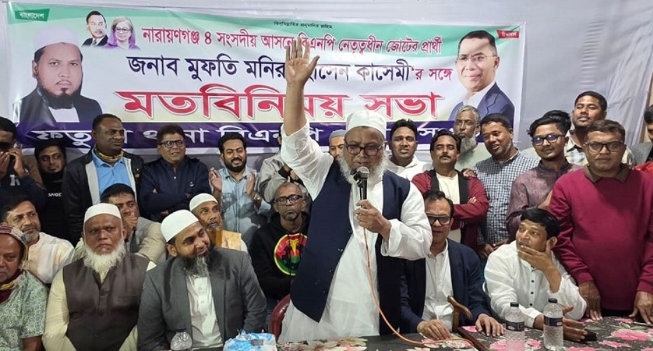 নারায়ণগঞ্জ-৪ আসনে বিএনপি নেতৃত্বাধীন জোটের প্রার্থী মুফতি মনির হোসাইন কাসেমী বলেছেন, আমি বিএনপির প্রার্থী, জমিয়তে ইসলামের প্রার্থী। বিএনপি আমাকে মনোনয়ন