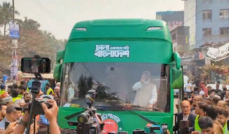 বাসে নির্বাচনী প্রচারণা শুরু করলেন জামায়াত আমির