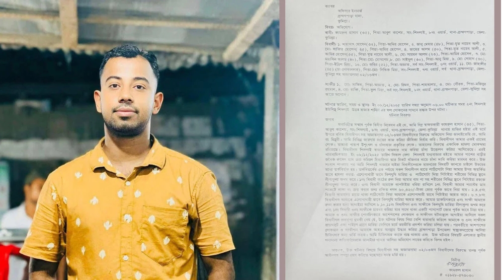 কুমিল্লার ব্রাহ্মণপাড়া উপজেলার শিদলাই আমির হোসেন জোবেদা ডিগ্রি কলেজ ছাত্রদলের সভাপতি সাব্বির হোসেনের বিরুদ্ধে চাঁদা না দেওয়ায় রংমিস্ত্রি ও