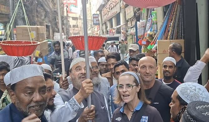 ঢাকা-৭ আসনে গণসংযোগে জামায়াত প্রার্থী, স্লোগানে যোগ দিলেন দুই বিদেশি