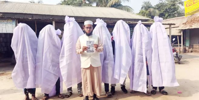কাফনের কাপড় পরে জাতীয় পার্টির প্রার্থীর নির্বাচনি প্রচারণা