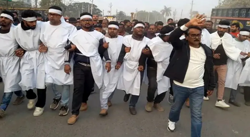 রাশেদ খানকে অবাঞ্ছিত ঘোষণা, কাফনের কাপড় পরে সড়ক অবরোধ বিএনপি নেতাকর্মীদের