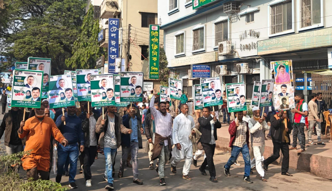 ইলিয়াস আলীর ছবি হাতে সিলেটের নির্বাচনি সমাবেশে বিএনপি নেতাকর্মীরা
