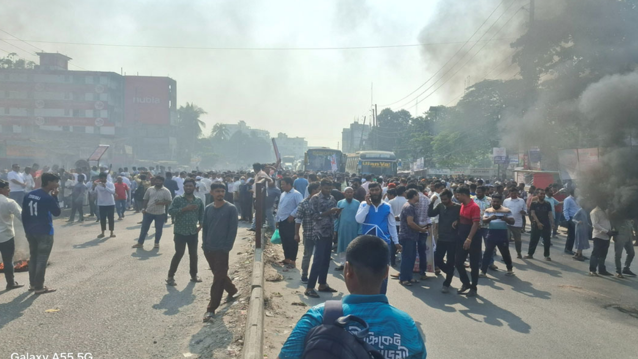 গাজীপুরে ঢাকা-ময়মনসিংহ মহাসড়ক অবরোধ, গাজীপুর-৬ আসন বিলুপ্তির প্রতিবাদে এলাকাবাসীর বিক্ষোভ