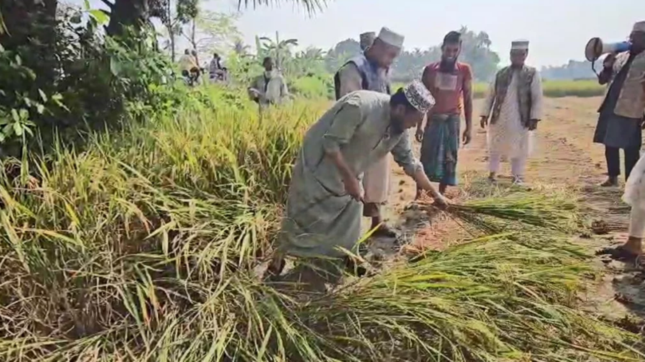 ধান কেটে ভোট চাইলেন জামায়াত প্রার্থী মুফতি আমির হামজা